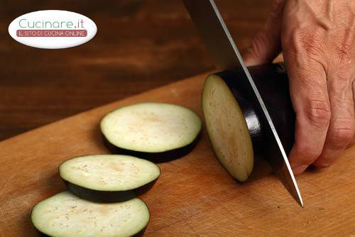 - A Rondelle : poggiate la melanzana in senso orizzontale su un tagliare. Con una mano tenete ben stretta un'estremità, mentre con l'altra tagliate delle fette dello spessore che preferite.