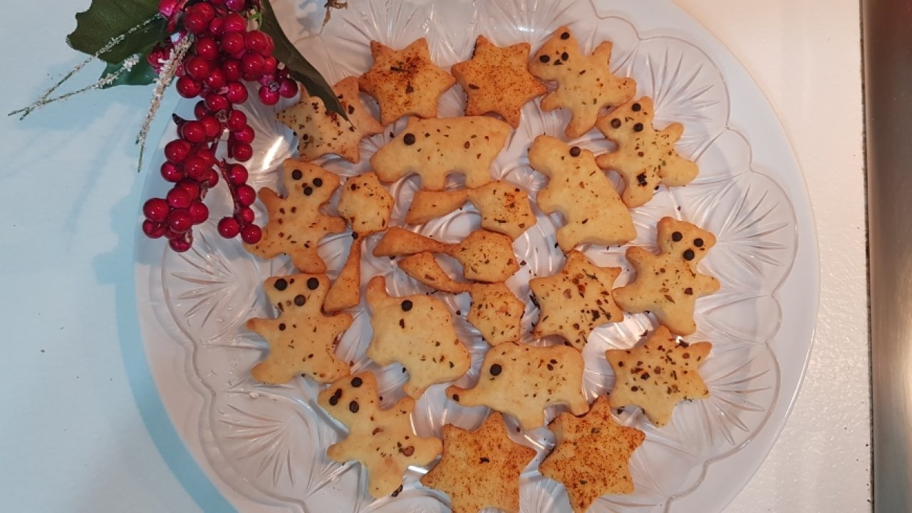 10Sforniamo i biscotti e sistemiamoli in un piatto.11Gustiamo i Biscotti Salati Di Natale tepidi o freddi.