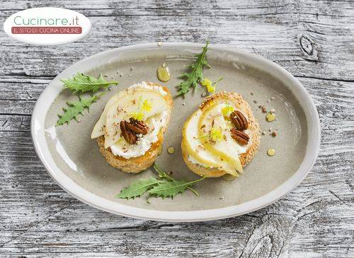 COME FARE Bruschetta con Crema di Formaggio, Pere, Noci Pecan e Miele