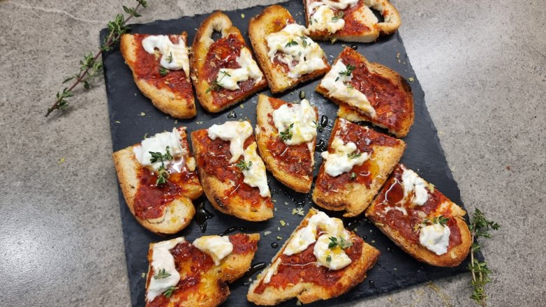 COME PREPARARE LE BRUSCHETTE CON STRACCIATELLA E NDUJA