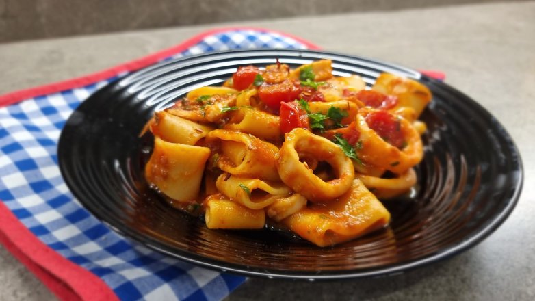 Calamarata napoletana con calamari e pomodorini: la ricetta di mare semplice e irresistibile