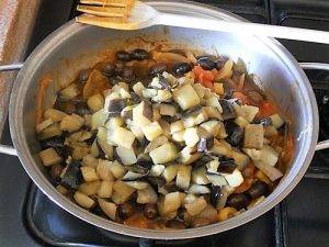 10Nel frattempo il sugo sarà pronto11Trasferite le melanzane nella casseruola con il resto degli ingredienti12Spolverizzate con lo zucchero