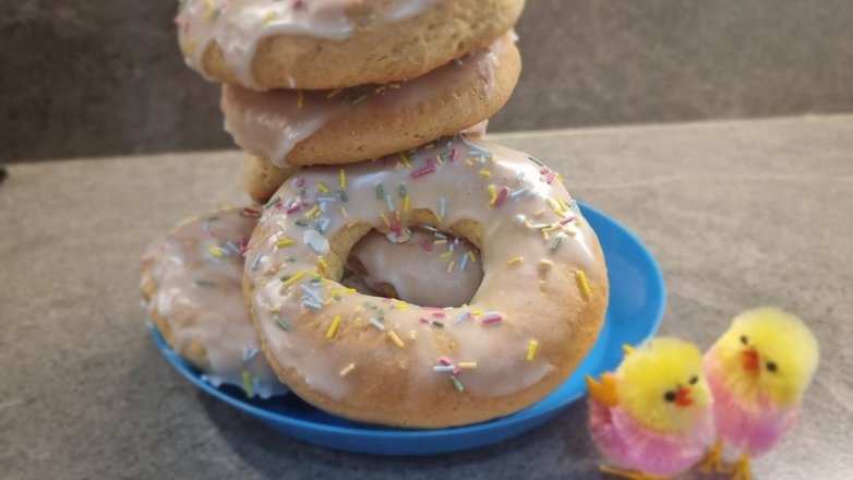 19 Lascia asciugare la glassa sulle Ciambelline di Pasqua Dolci (ci vogliono pochi minuti).20Ricetta completata! La Ciambelline di Pasqua sono profumate e golose.