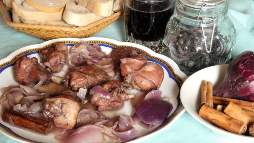Ma il trucco per rendere questo piatto veramente favoloso, è il brodo speziato di cipolle rosse con il quale viene cucinato. Infatti questo brodo vegetale studiato ad hoc per la ricetta, aggiunge sapore e regala morbidezza al coniglio che cucina lentamente assorbendo la dolcezza della cipolla di tropea e fa in modo che la sua carne rimanga tenera all'interno. Il brodo è arricchito con due spezie molto diverse tra di loro: bacche di ginepro dal sapore resinoso e leggermente pungente e cannella intensamente dolce e leggermente piccante. Queste due spezie valorizzano e completano la fragranza del coniglio aggiungendo le note peculiari che le caratterizzano.