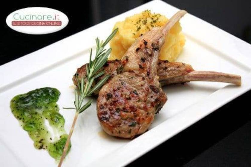 Sistemate i vostri cosciotti d’agnello in un vassoio o direttamente nei piatti e conditeli con le due salse preparate, il purè di patate e un rametto di rosmarinoBuon appetito.