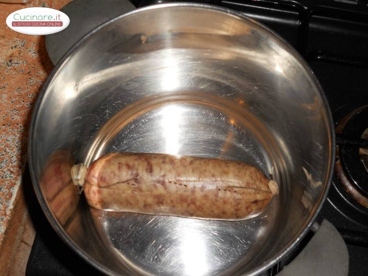 1Lavate il cotechino e asciugatelo con carta assorbente da cucina e punzecchiatelo con una forchetta2Mettetelo in una pentola3Copritelo di acqua fredda