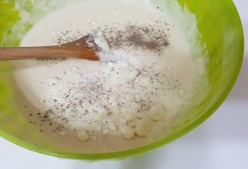 7Miscela bene e copri la ciotola con pellicola trasparente. Lascia lievitare la pastella per 1 ora ed 1/4.8Fai scaldare bene l'olio di semi in un'ampia padella e riprendi la pastella lievitata.9Versa il composto a cucchiaiate nell'olio bollente.