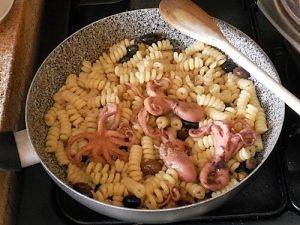 7Nel frattempo fate lessare i fusilli e scolateli al dente. Trasferiteli, senza sgocciolarli troppo, nella padella con i moscardini8Mescolate e fate saltare per un paio di minuti facendo insaporire bene la pasta9Distribuite i fusilli con moscardini sfiziosi in fondine individuali e serviteli subito ben caldi. Buon appetito!!!
