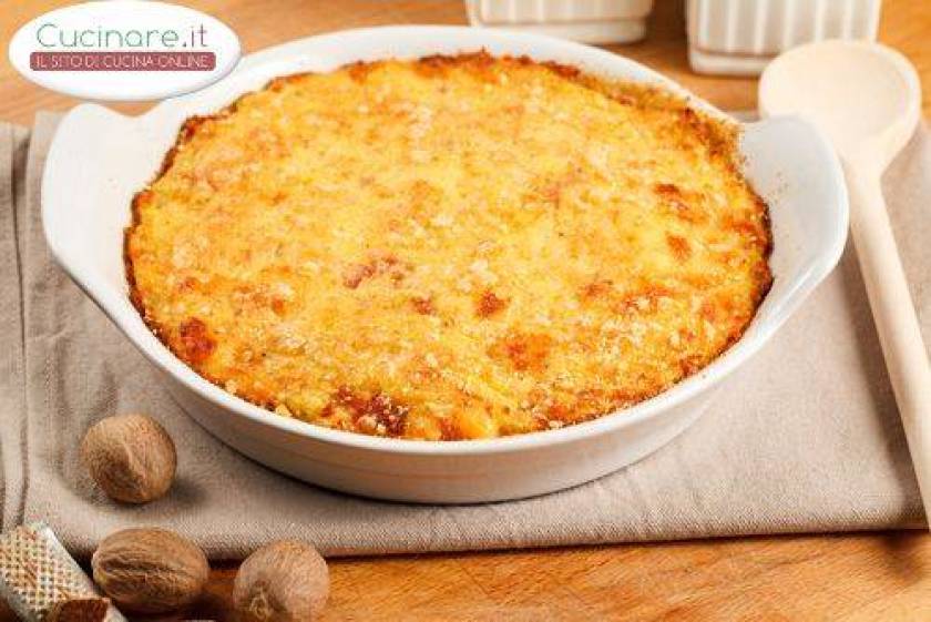 Amalgamate tutti gli ingredienti fino a quando il latte sarà stato assorbito dall'impasto. Imburrate la pirofila o gli stampini con una noce di burro e versate all'interno l'impasto del vostro gateau. Ricoprite la superficie con una spolverata di pangrattato e infornate in forno preriscaldato a 180 gradi per circa 20 minuti.