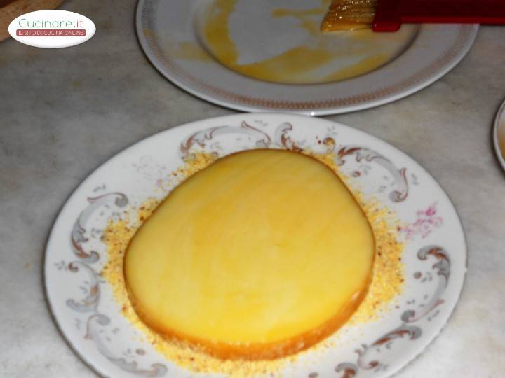 1Rompete l'uovo in una ciotola e sbattetelo e mettete la farina di mais sopra un piatto2Spennellate le fette di provola con l'uovo da entrambi i lati e sui bordi utilizzando un pennello3Infarinate le fette di provola da un lato