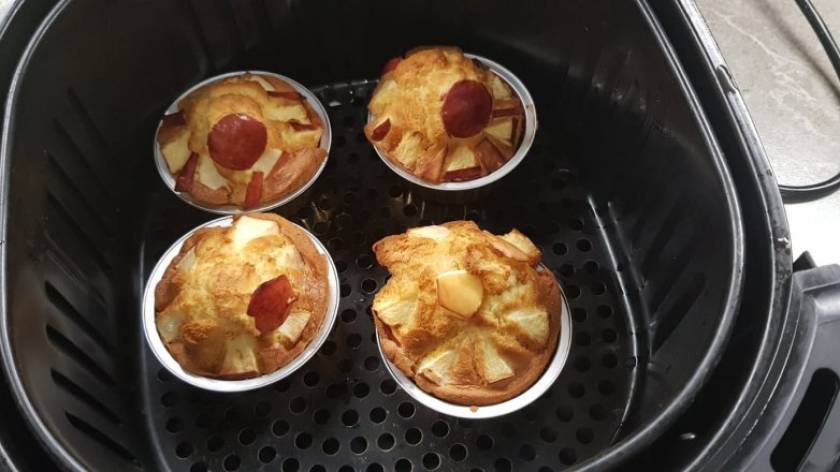 2) In friggitrice ad aria questi muffin dolci cuociono a 160°C in soli 16 minuti. Se preferisci, puoi cuocerli in forno statico a 180°C per circa 25 minuti (se ventilato a 170° sempre per 25 minuti).