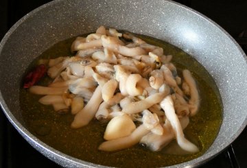 Nella nostra ricetta vengono dapprima fatti aprire e poi sgusciati, rosolati con peperoncino che li renderà frizzanti e aglio e poi lasciati cuocere con basilico in un vino bianco molto profumato e fruttato come un Ortrugo dell'Oltrepò oppure con una Malvasia secca che li intenerirà lasciandoli, però, ancora croccanti e arricchendoli di sapore intenso e creerà un condimento corposo e abbondante ideale per farci saltare una pasta lunga.La pasta deve avere una superficie ruvida in modo che il condimento vi si aggrappi tanto da insaporirsi alla perfezione: ideale sono qualità di pasta trafilate al bronzo oppure pasta fresca di semola. Inoltre è consigliata la pasta fatta essiccare lentamente: in questo modo manterrà la cottura al dente senza sfaldarsi durante la mantecatura finale in padella. Dopo la mantecatura il risultato sarà una pasta vellutata e molto saporita avvolta da un sugo denso e setoso.
