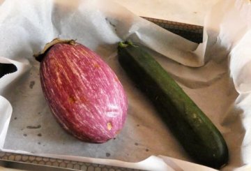 Melanzane e zucchine, elementi base del paté, vengono cotti al forno.