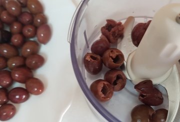 1Passa sotto acqua corrente e snocciola 200 grammi di olive nere e mettile via via nel mix.2Unisci un filetto di acciuga e 4 cucchiai d'olio evo.3Aziona il mix per qualche secondo.