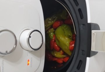 Questa ricetta è salutare e gustosa. Dopo aver pulito ed asciugato con cura i peperoncini verdi, li ho versati in una ciotola con i cucchiaio d'olio evo e poi li ho rigirati perbene per farli ungere su tutti i lati. In seguito li ho cotti nella friggitrice ad aria preriscaldata a 200 gradi per circa 16 minuti, avendo cura di rigirarli dopo 10 minuti. In questa ricetta ho utilizzato friggitelli grandi, lunghi circa 12 centimetri, disposti in un solo strato nel cestello della friggitrice. Facile non trovi? Velocità, praticità: risparmi anche circa 5 minuti di cottura rispetto alla ricetta dei friggitelli al forno. E visto che questa è una ricetta tipicamente estiva, eviti di accendere il forno che produce calore. Cosa che la friggitrice ad aria non fa. Adoro! (detta alla Signorini...).CONSIGLI