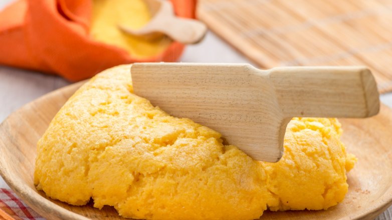 Versa subito la Polenta Bramata Bimby su asse di legno o in pirofila inumidita; livella con spatola bagnata..