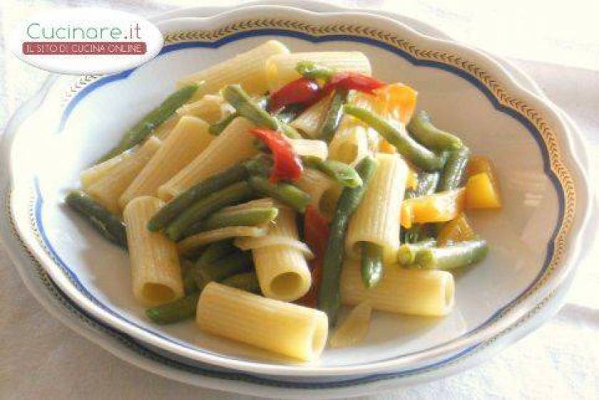 Rigatoni in agrodolce con Fagiolini, Cipolla e Peperoni
