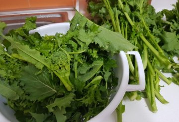 4Puzecchiatele poi con una forchetta affinché rilascino parte del grasso. 5Eliminate l'acqua, unite un cucchiaio d'olio e sfumatele con poco vino bianco; lasciate cuocere ancora per una decina di minuti.6Mettete i friarielli in una padella ampia dove avrete fatto soffriggere uno spicchio di aglio scamiciato e 2 peperoncini secchi.