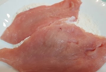 1Infarinate su entrambi i lati le fette di tacchino. 2Fatele cuocere in olio e burro per circa 6 minuti (circa 3 minuti per lato).3Unite qualche ago di rosmarino, salate e sfumate col succo di 1/2 limone.