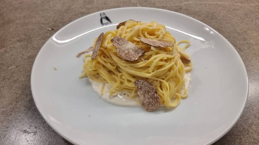 Tajarin al Burro nocciola con fonduta di Bitto e Tartufo bianco d’Alba
