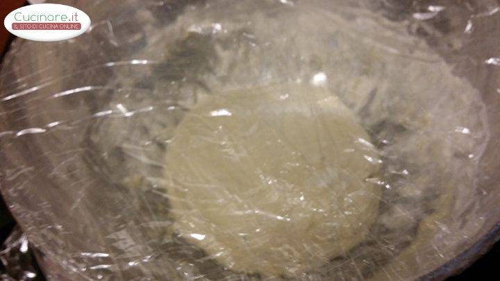 2Formate una palla e rimettete l'impasto, che dovrà risultare liscio ed omogeneo, nella ciotola.3Coprite con pellicola trasparente e lasciate lievitare per 2 ore lontano dalle correnti d'aria.4Quando l'impasto avrà raddoppiato di volume, trasferitelo e stendetelo su una leccarda da forno unta con l'olio.