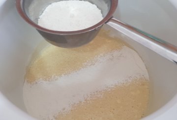 1Mettete in una ciotola il latte intero, le uova ed un poco di sale.2Lavorate con una frusta.3Aggiungete la farina setacciata.